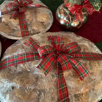 1 dozen individually wrapped cookies in the flavors of your choice are uniquely displayed as a wreath wrapped in ribbon.
